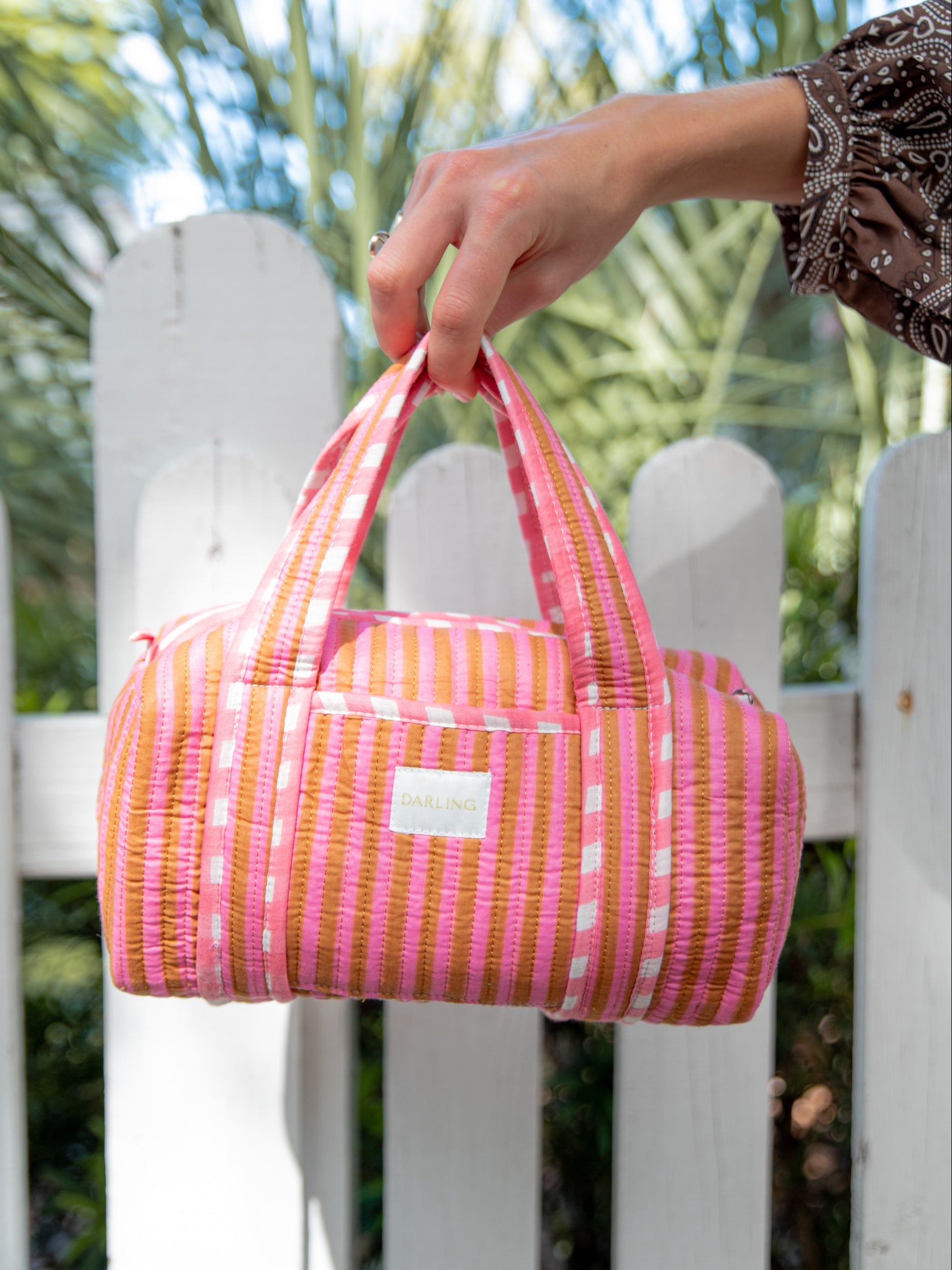 Quilted Handled Cosmetic Bag - Pink Paloma Stripe