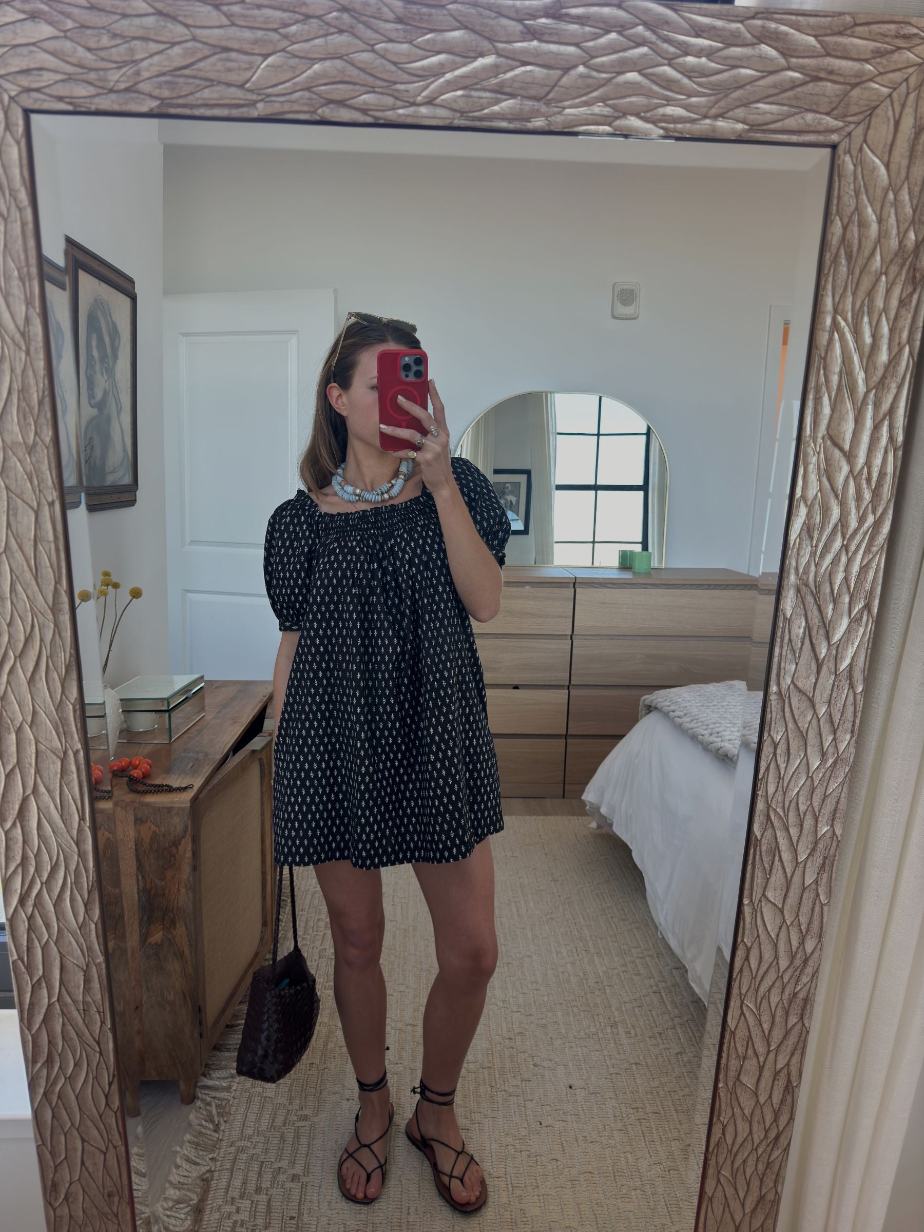 The perfect marriage of comfort and style - a flowing puff-sleeve top that doubles as a dress, plus matching shorts. A comfy elastic neckline that can be worn on or off shoulder. This versatile duo takes you from lounging to living with effortless style. Wear the top long as a dress or tucked in for two completely different looks. This colorway is lined.