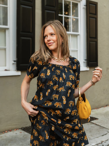 The perfect marriage of comfort and style - a flowing puff-sleeve top (with pockets!) that doubles as a dress, plus matching shorts. A comfy elastic neckline that can be worn on or off shoulder. This versatile duo takes you from lounging to living with effortless style. Wear the top long as a dress or tucked in for two completely different looks. This colorway is lined.