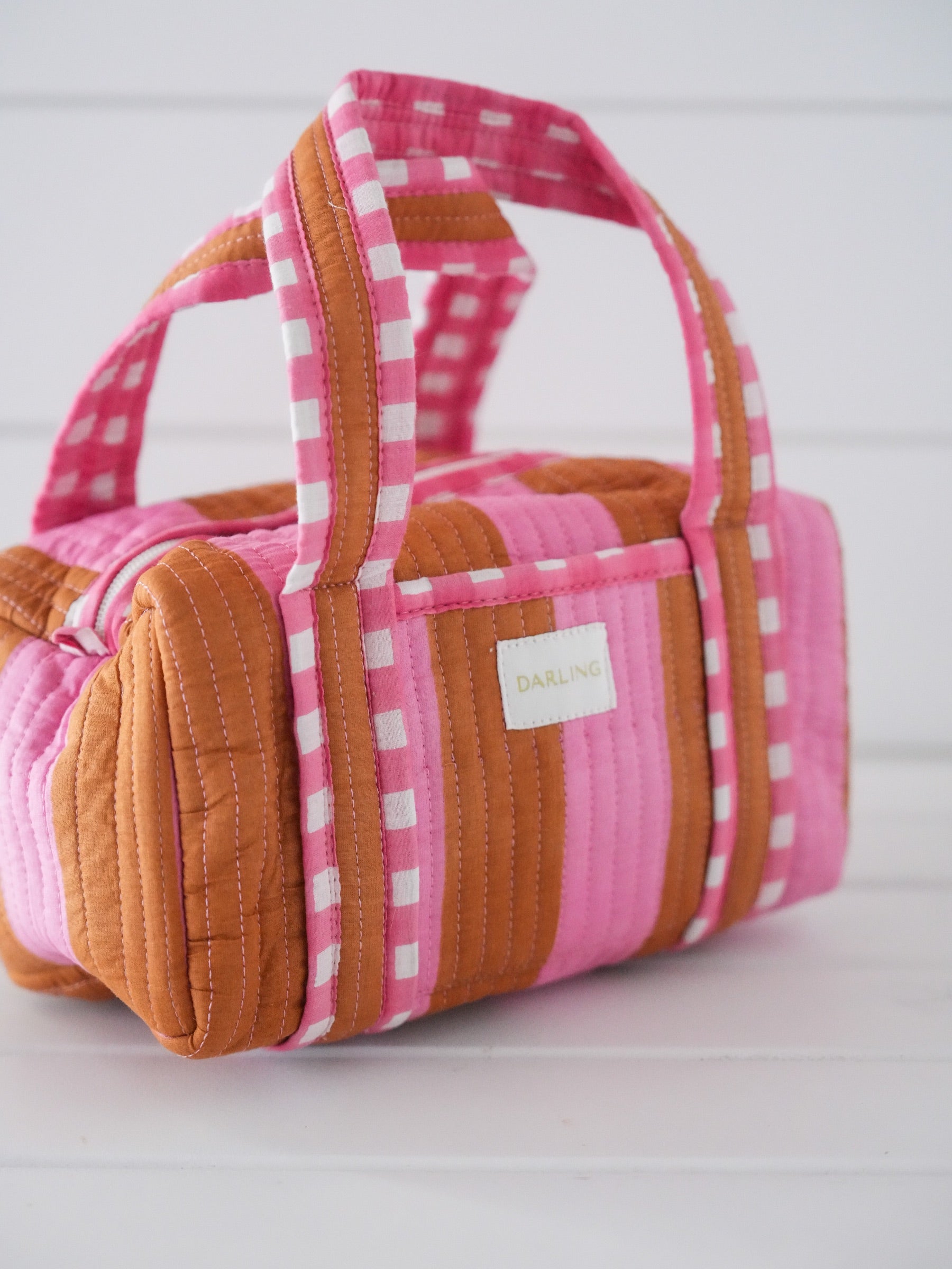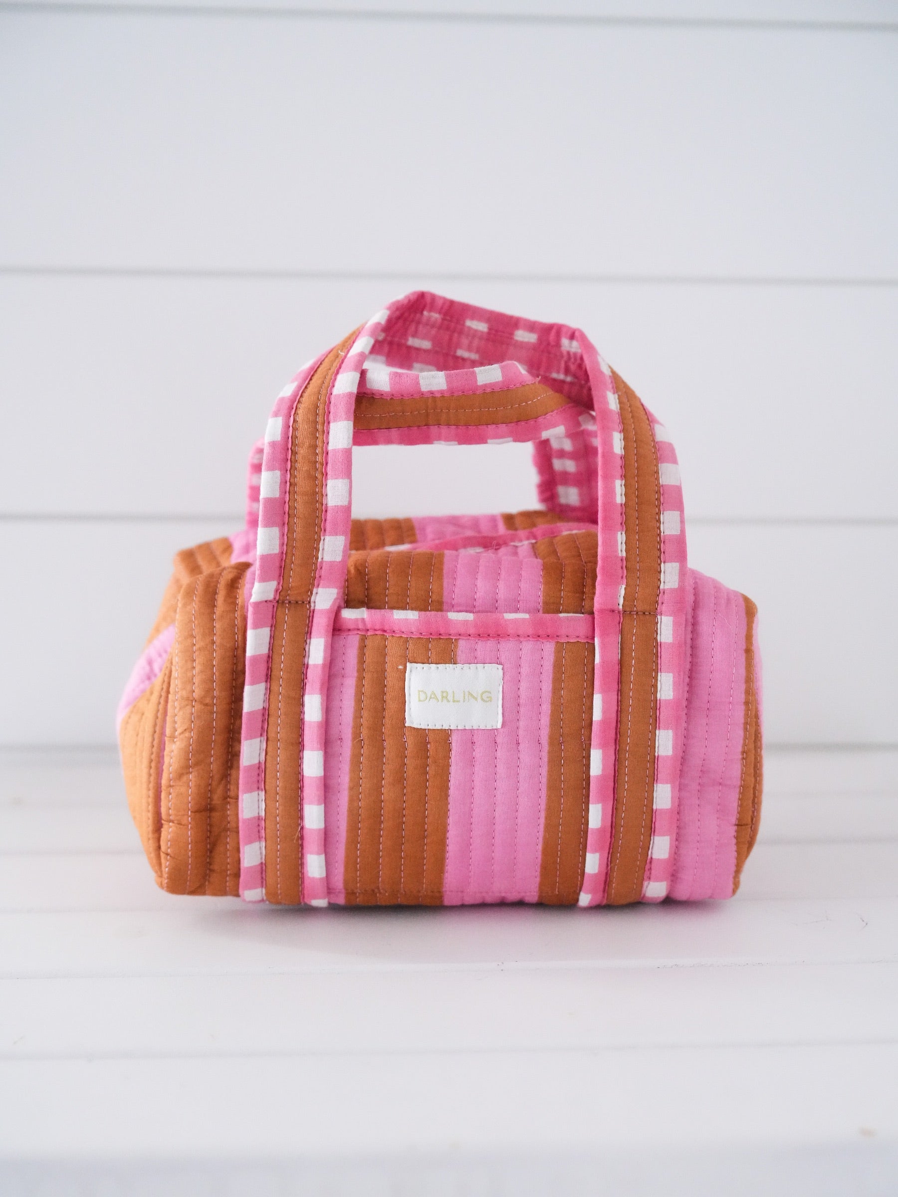 Quilted Handled Cosmetic Bag - Pink Saddle Stripe