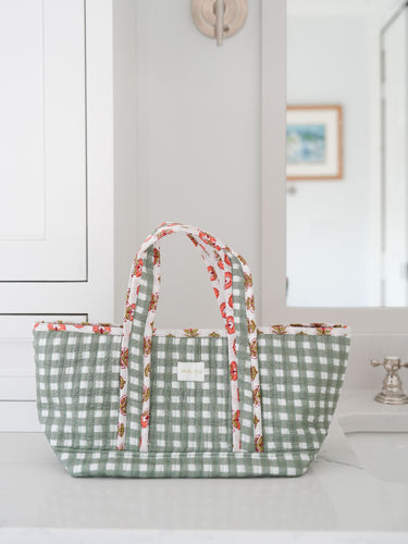Measurements: Length of base when flat: 11". Width of base when flat: 6". Length at top of bag: 17". Handle Length: 7".