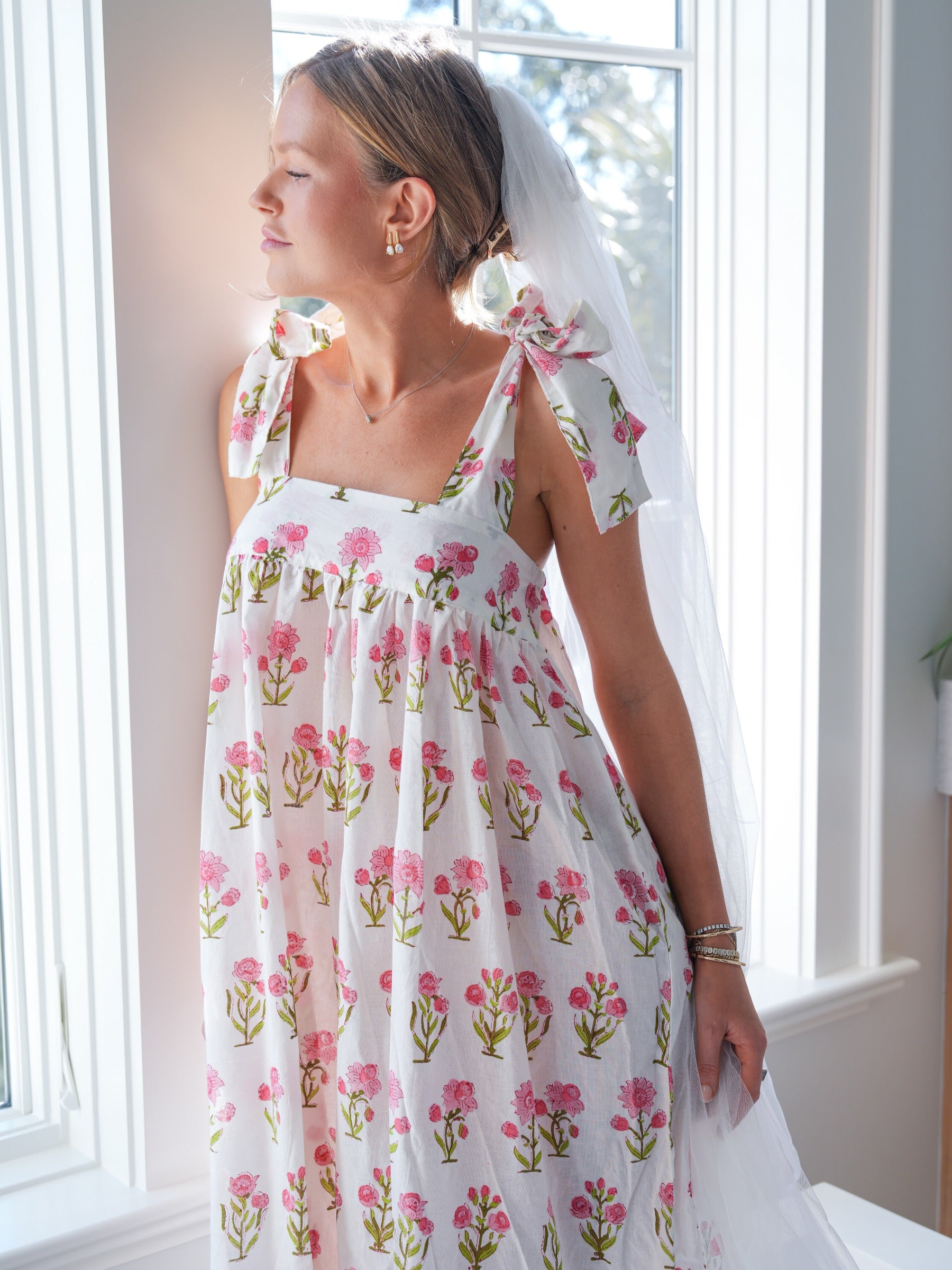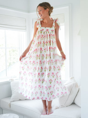 Our bestselling tie dress reinvented in a breezy maxi length. Designed in soft, breathable cotton, this updated silhouette features an elastic in the back and adjustable tie straps for a customizable fit. Knot them in the back, tie in a bow, or tuck the straps for a halter look.