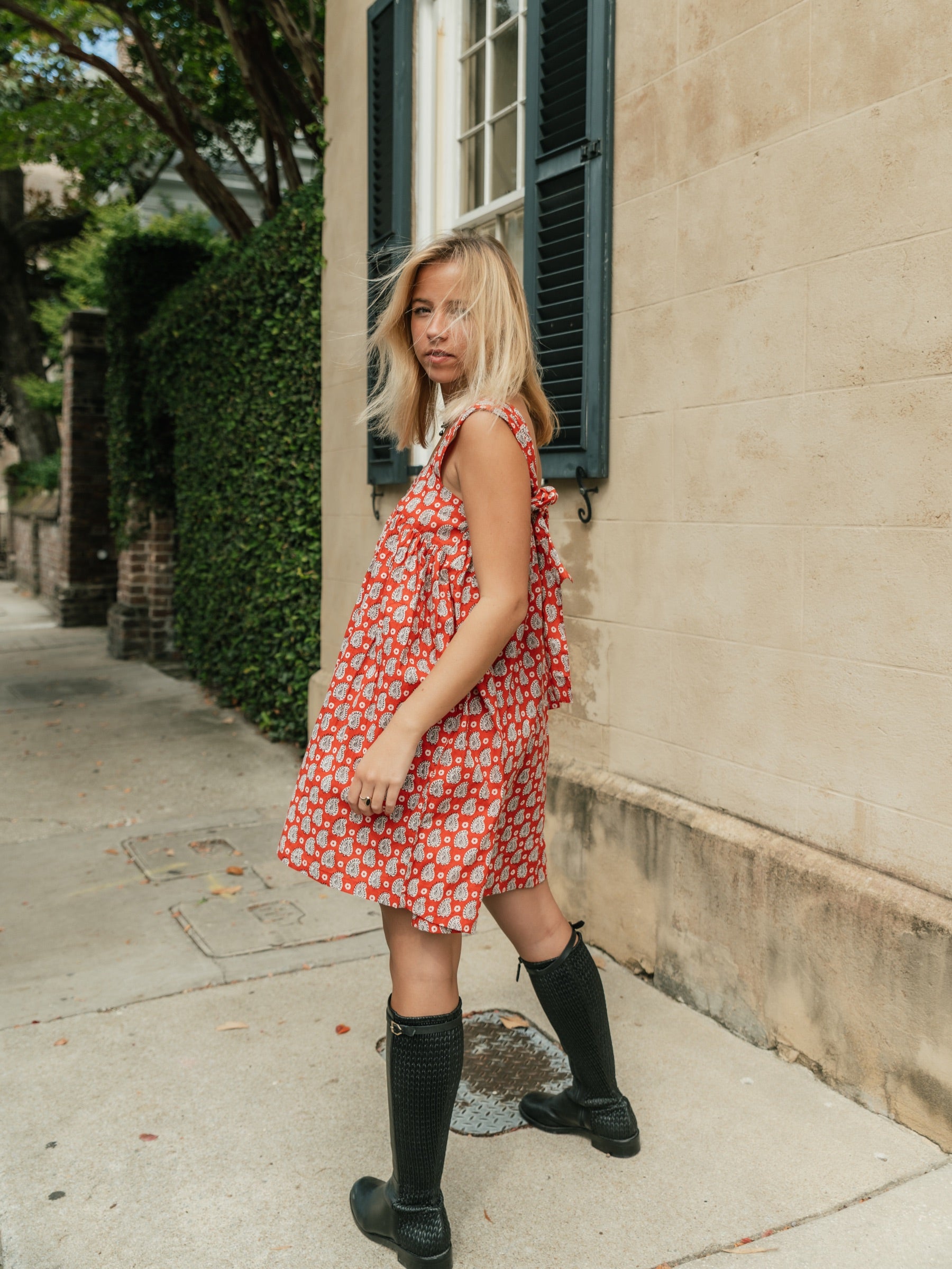 Our signature tie dress, designed with fully functional shoulder ties for a customizable fit. Style them knotted in the back, tied in a bow, or as a halter. Finished with coordinating boxers for easy wear and added coverage.
