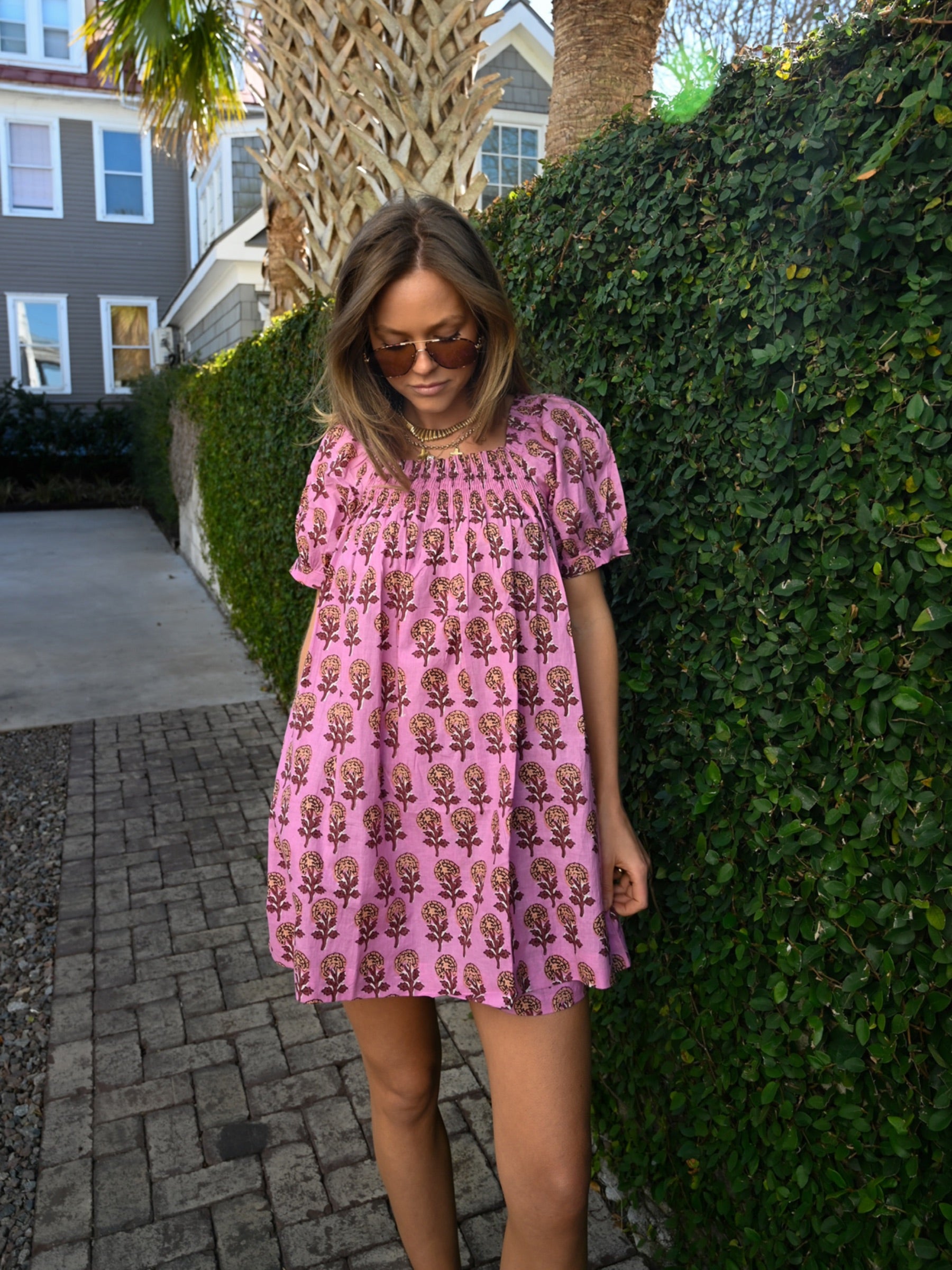 The perfect marriage of comfort and style - a flowing puff-sleeve top (with pockets!) that doubles as a dress, plus matching shorts. A comfy elastic neckline that can be worn on or off shoulder. This versatile duo takes you from lounging to living with effortless style. Wear the top long as a dress or tucked in for two completely different looks. This colorway is fully lined.